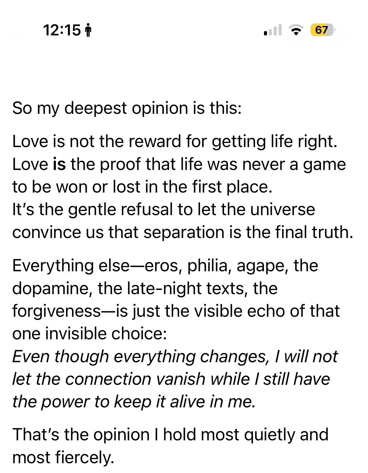 Even though everything changes, I will not let the connection vanish while I still have the power to keep it alive in me.
