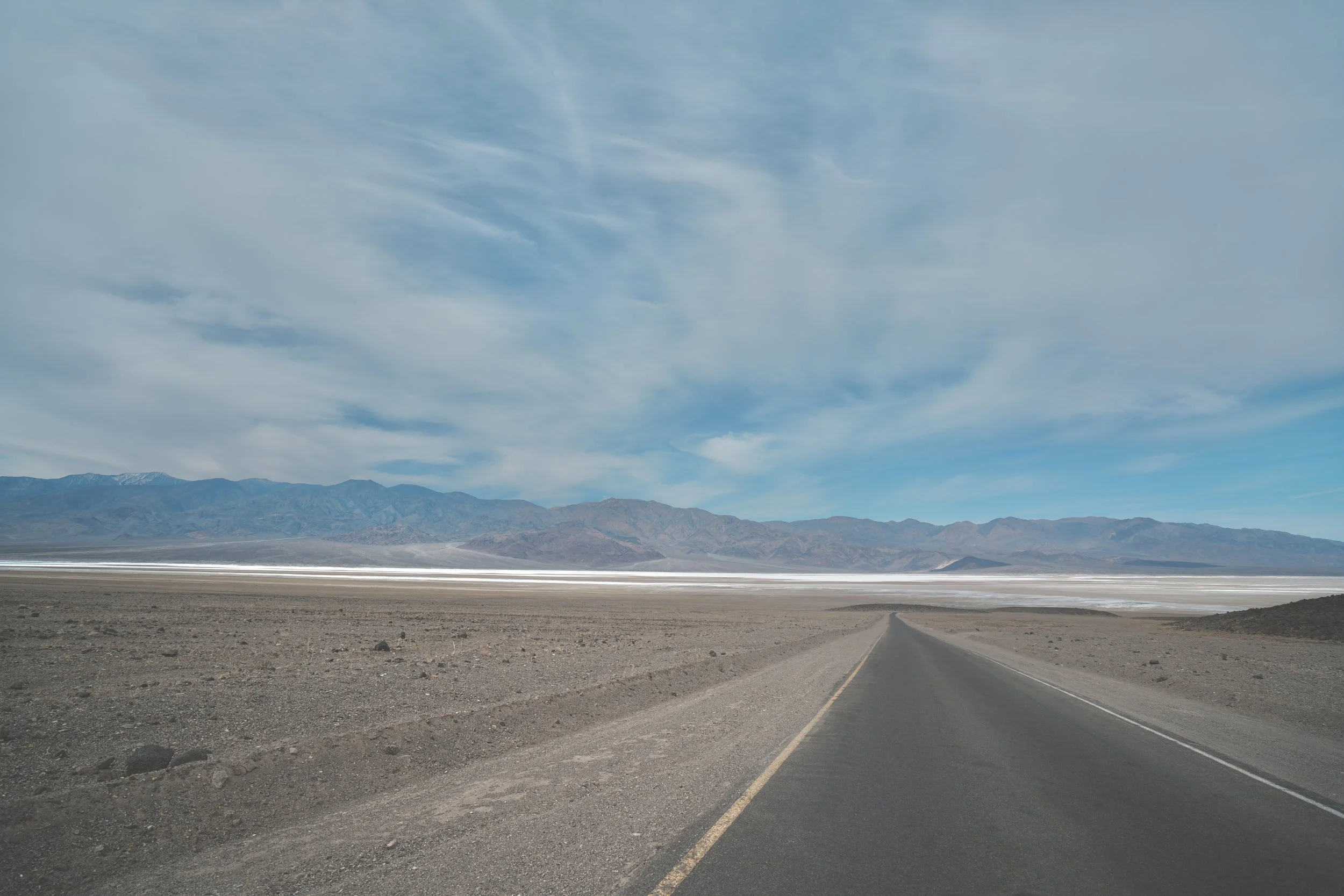 Salt flats stretch white and cracked beneath the wide-open sky, mountains stand like silent witnesses on the horizon, and every mile marker whispers the same truth: we are here, right now, choosing to keep moving forward.